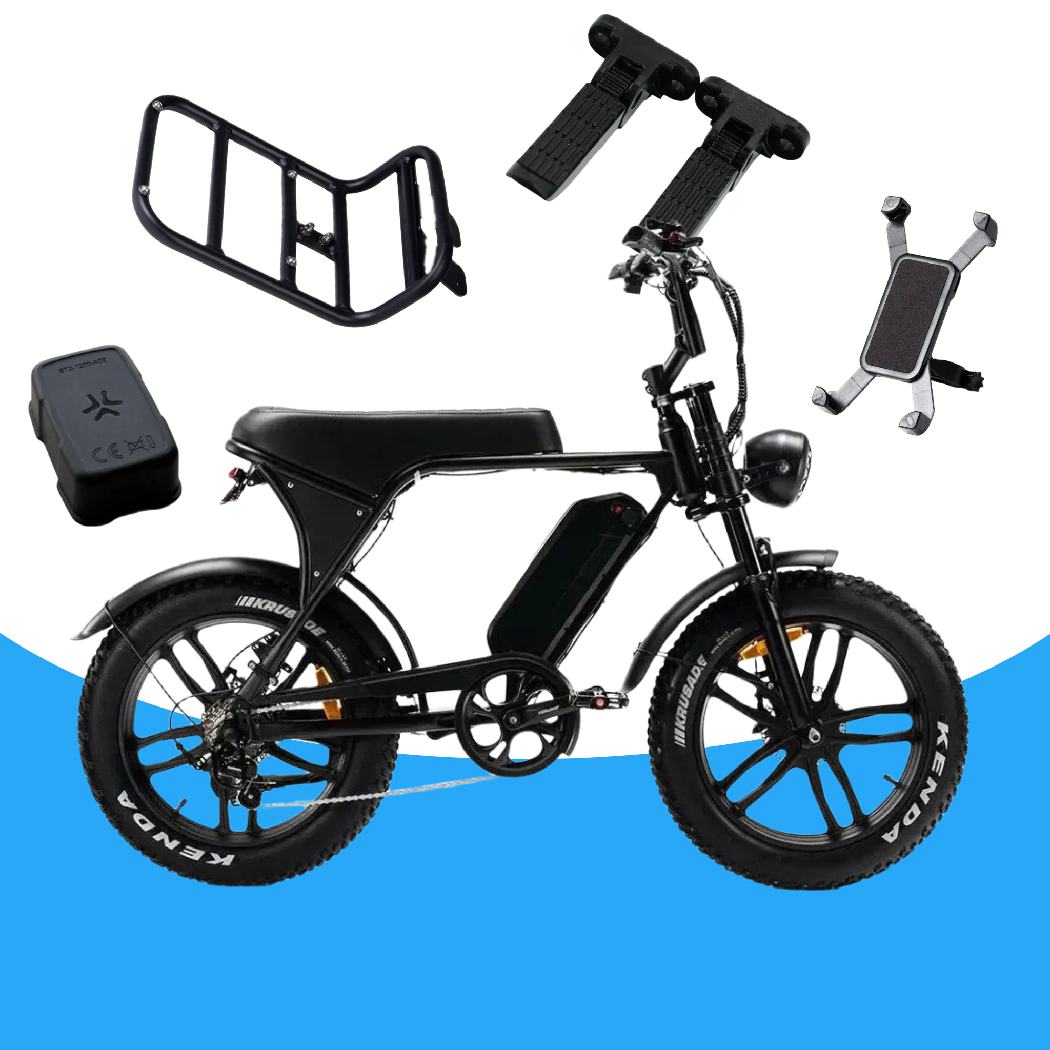 QM Wheels fatbikes staan bekend om hun betrouwbaarheid, gebruiksgemak en krachtige ondersteuning. De QM V20 is een solide allround model en de QM V20+ biedt een dubbele accu met actieradius tot 120 kilometer. Perfect voor wie comfort en bereik belangrijk vindt.